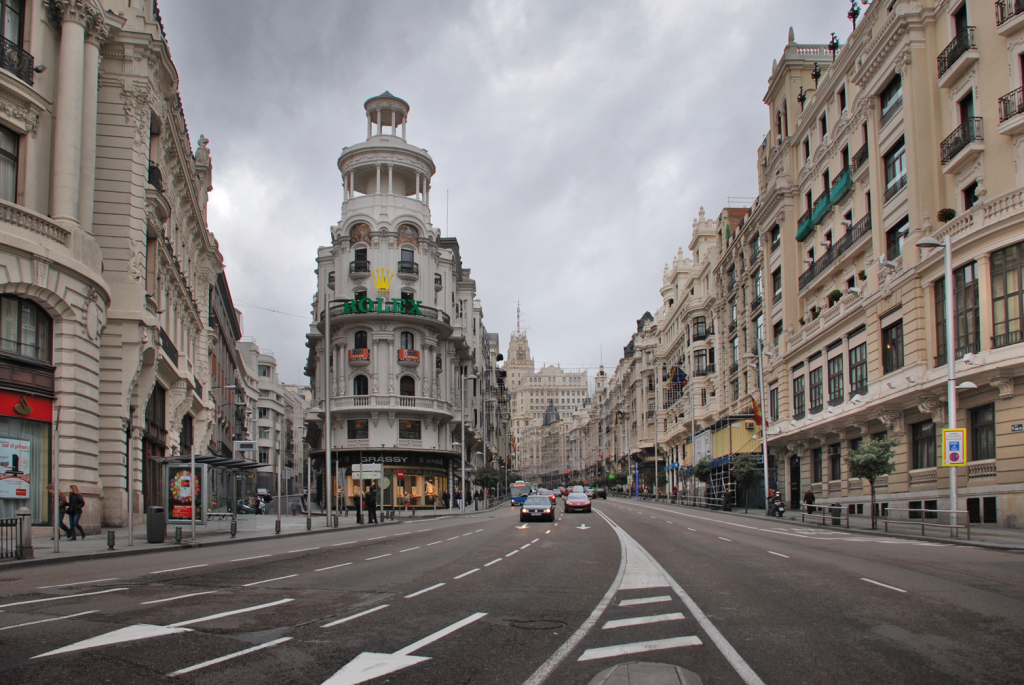 la Gran Vía dibujada por Antonio López desde la isla protagonista del artículo, MadridNi en el Barrio de Salamanca ni en ninguna urbanización de lujo, el metro cuadrado más cotizado de Madrid se ubica, casi anónimo, en mitad de una isleta gris, en el punto exacto donde Gran Vía y la Calle Alcalá funden sus vidas. Un lugar insulso para el peatón medio que nadie debería pasarse por alto. A continuación os explico el porqué.