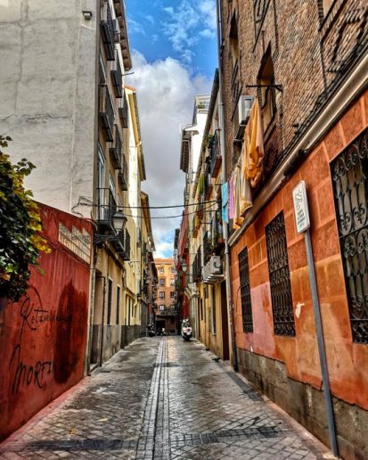 Nos encanta esta callejuela insignificante y tranquila, con su parra ya en la esquina con C/Mediodía chicha…
