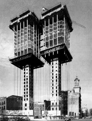 Tengo entendido que Las torres de Colón las hizo mi abuelo, «Construcciones metálicas Domingo Fernández» tenía el taller en la Ronda de Segovia nº3 de Madrid, también hizo las antiguas barandillas del metro de Madrid y muchas otras cosas en Madrid en la época, como portales, y las puertas de entrada a los jardines Sabatini donde conserva una placa con estos datos.