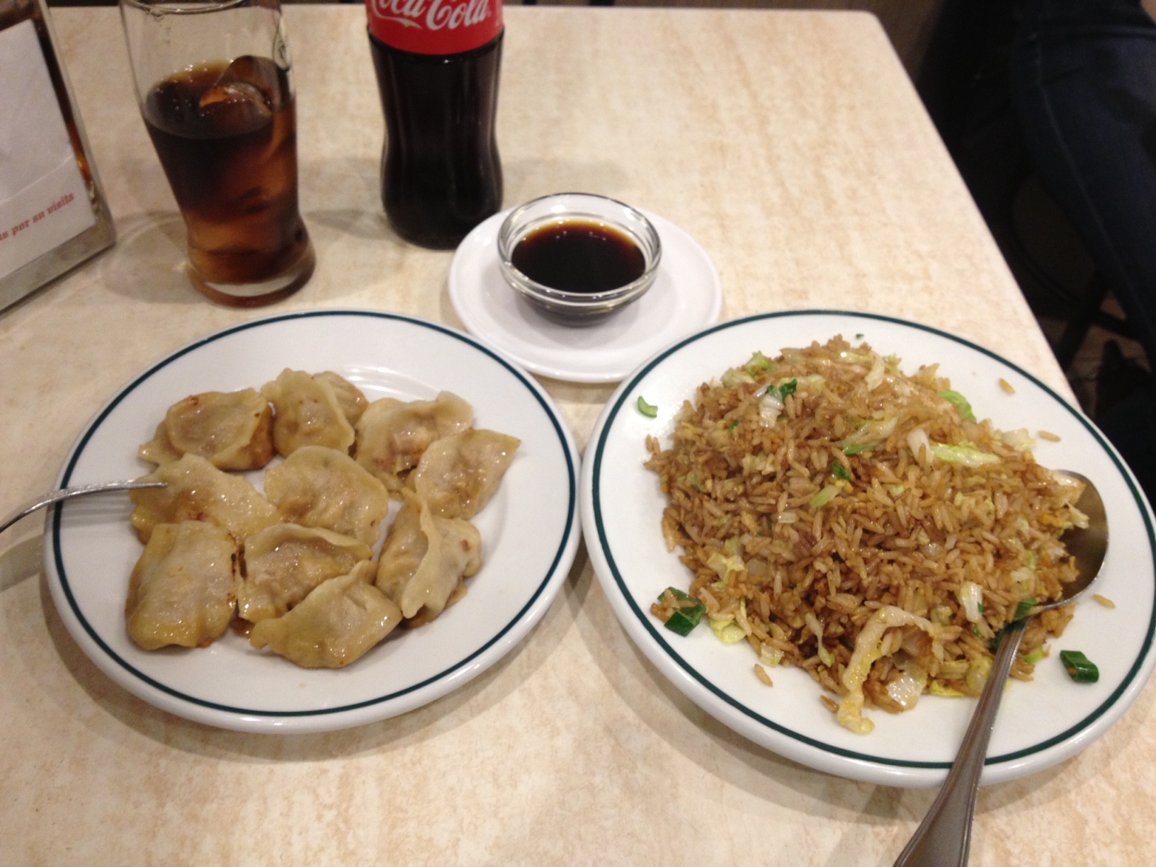 Empanadillas chinas a la plancha y arroz frito que pude degustar en el chino ubicado bajo Plaza de España, en Madrid